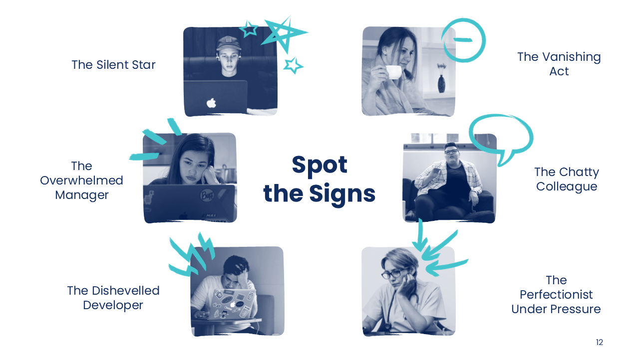Brand colours were used as an overlay as a simple way to unify photography from different sources. A collage mixed-media style with rough cut-outs and shape masks allows future facilitators to replicate the style in powerpoint without any design programs.